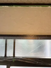 先日霧吹きを使って繊維壁を剥がして下地までしておいた玄関内の4面の壁今日は柱や木部の部分をアンティークワックスを塗り乾いてから養生!!! 1番面積少ないとびらの上からモルモルを塗り塗り😊仕上がったのは3面🎶面積広いと大変💦💦💦床のタイルは昭和感満載だけどこのまま残す予定!壁の作業終わったら