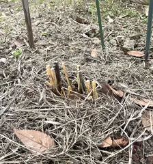 アスパラガス アスパラガス昨年に株を購入し初チャレンジ春の収穫に向け寒肥作業してきました! アスパラガスは1年目には収穫できなくて株を育てるために発芽してきたものはそのまま育て続け、枯れるのを待ち下から10cm程の所でカット✂️根元から20cm程のところに円状に寒肥してきました! あとは春を待