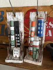 解体した板でビンテージ風に 旦那さんが知り合いさんから貰ってきた廃材年末ぐらいに我が家にやってきてたけど、体調崩してたので放置💦ちらちら横目でみながら「何にリメイクしよか👀」と思ってて…サイズみてたらずーっと前から作ってみたいと思っていた(名前が分からないけど😅💦)現場とかで使ってる測量関係の物差し?を思いついて作ってみました