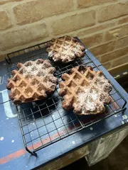 自分おやつ(砂糖なし) 完熟バナナ消費のため、いつも米粉マフィンにしていましたがワッフルにしてみました😊 砂糖なしでもちょうどいい甘さでした ブラックチョコ入り🍫