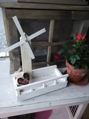 風車型プランター作りました柱はバニラ羽と本体はピュアホワイトにしました✨ありがとうございました🙇