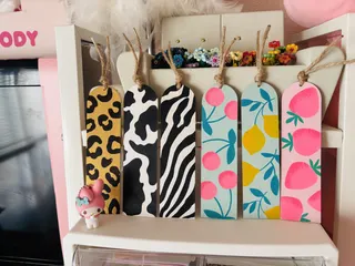ブックマーク Animal Print Set/動物の模様 Fruit Patterns Set/フルーツのパターン 今日、2種類のブックマークを作って来ました。 こちらは昭和レトロ感をだしたかったので蛍光ぽい色に見える様に塗りました。 予約を入れても息子の都合等々で3回もキャンセルしてやっと作りに行けました。😽 キャンセルした店舗様、すみません🙇でした。