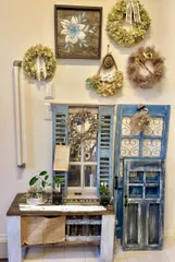 ミニサインボードを飾る場所が欲しく、いろいろ考えた末🤔この、玄関横の昭和レトロな窓がギャラリーにならないかと😁🎶1×4でフレームを作りました😊💕上段と下段ね高さが違うのは、上段部分は端材を使ったため、それに合わせて採寸📏使った塗料は『私の好きな塗料』で紹介した、クロッカーズのウォルナット❤️ミニサイ